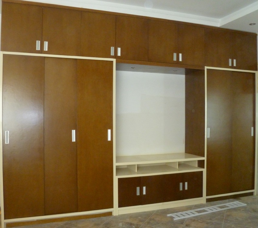 thiêt kế tủ âm tường đa chức năng trong phòng ngủ vửa là tủ quần áo vửa là kệ tivi