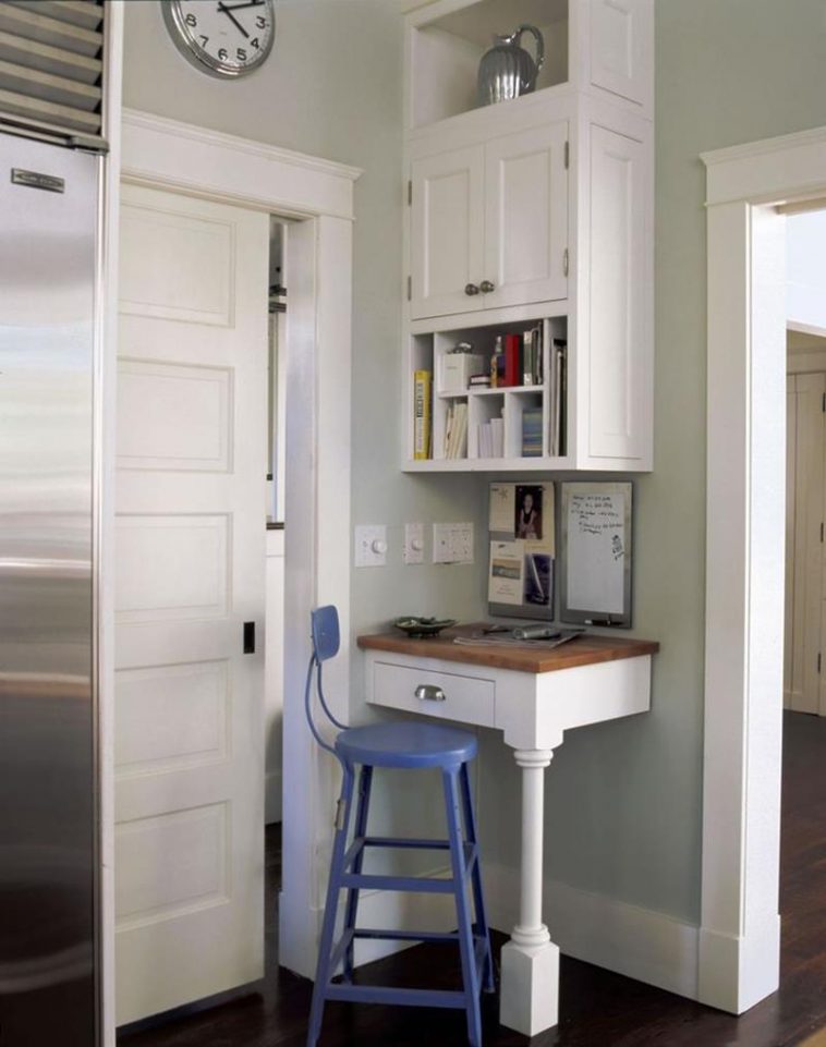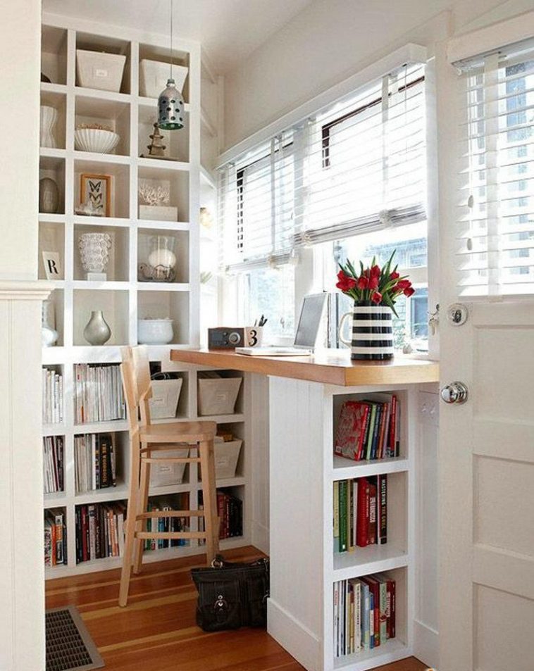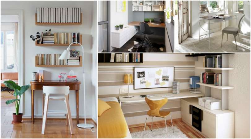 Sử dụng một góc hành lang và thiết kế những kệ treo tường và bàn là bạn đã có một khu vực làm việc tiện lợi