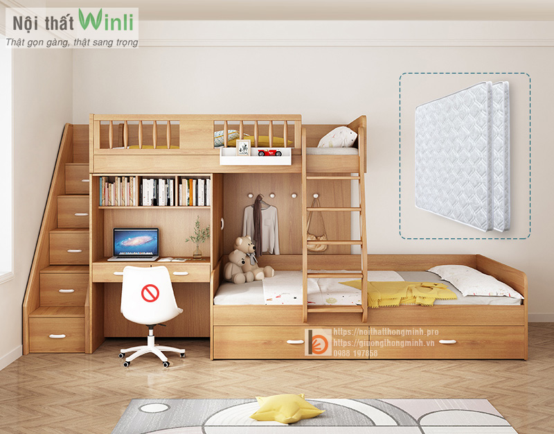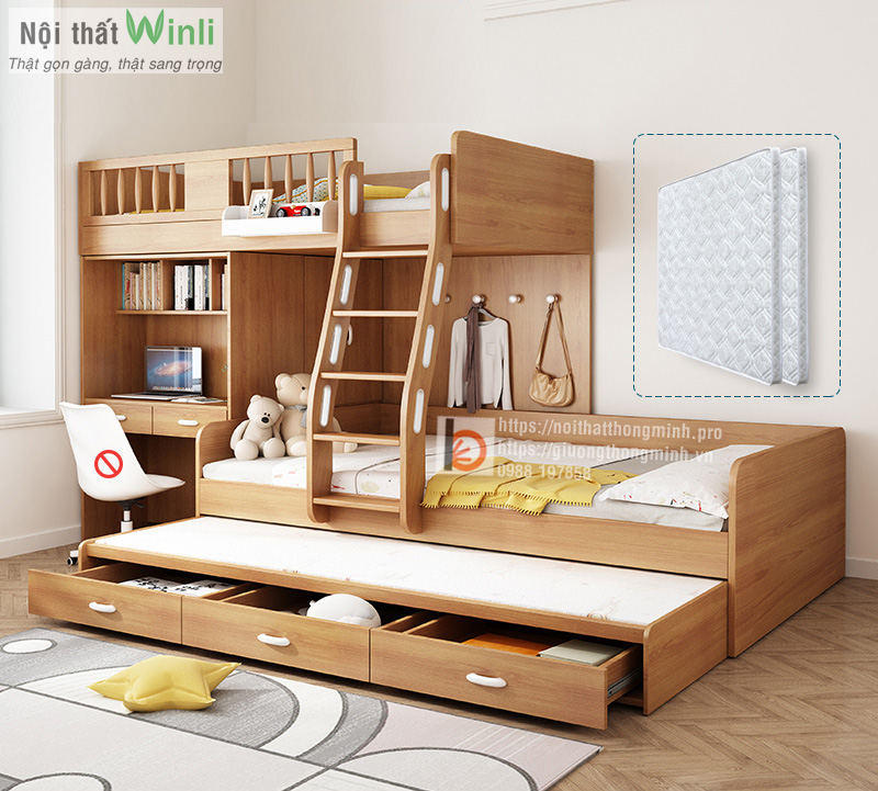 Giường tầng kết hợp bàn học: