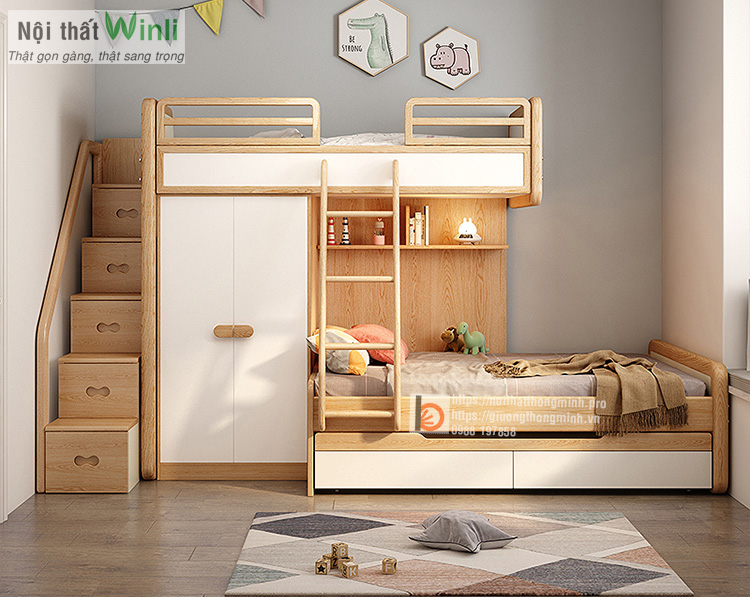 Giường tầng kết hợp tủ quần áo: