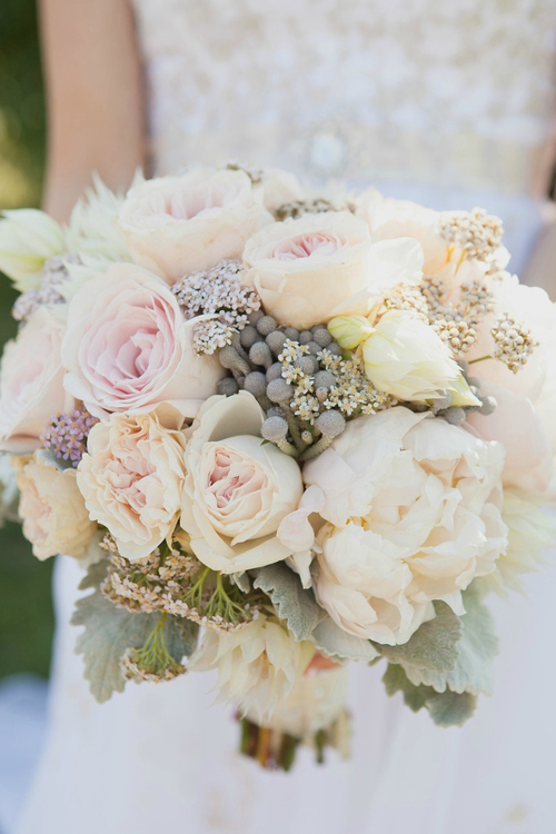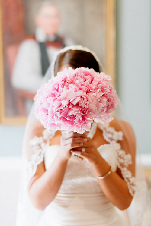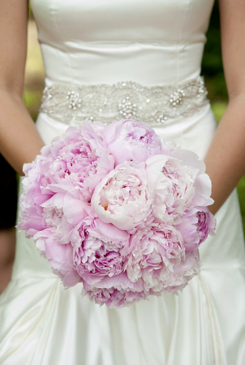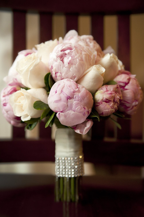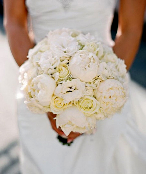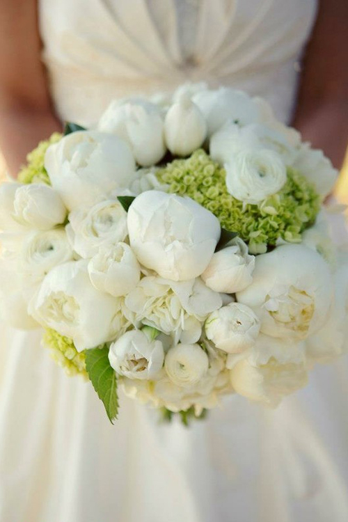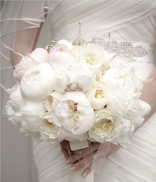 Hoa mẫu đơn tượng trưng cho sự sang trọng, thịnh thượng và trên thế giới có khoảng 30 loài mẫu đơn khác nhau với sắc màu đa dạng. Màu sắc của hoa mẫu đơn đều nằm trong dải màu từ trắng tới đỏ. Tại các nước châu Âu, mọi người quen thuộc với mẫu đơn màu đỏ, màu hồng đậm, hồng nhạt và màu trắng, nhưng ở Việt Nam, các cô dâu hầu như chỉ biết tới hai sắc màu hoa là hồng nhạt và trắng. Hoa mẫu đơn thu hút các tân nương vì mỗi bông hoa có tới hàng chục lớp cánh mỏng manh, xếp xen kẽ, đến khi hoa nở bung, đường kính hoa có thể tới vài chục centimet. Hoa tương trưng cho sự sang trọng, thịnh vượng và cuộc sống viên mãn, hạnh phúc. Vì ý nghĩa này mẫu đơn hoàn toàn thích hợp để kết hoa cô dâu trong đám cưới. 1. Hoa mẫu đơn trắng Mẫu đơn trắng gợi cảm giác mong manh và là biểu tượng của sự tinh khiết. Khi kết hoa cưới, cô dâu thường chọn mẫu đơn trắng cho đám cưới sang trọng. Để bó hoa nổi bật trên nền váy cưới trắng, cô dâu có thể đính pha lê, trang sức lên bó hoa cưới trắng để những bông hoa đẹp lấp lánh, bắt mắt hơn.